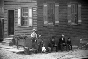 Bridge Street Draw. Southwest side of bridge. April 19, 1896. [Detail of people].